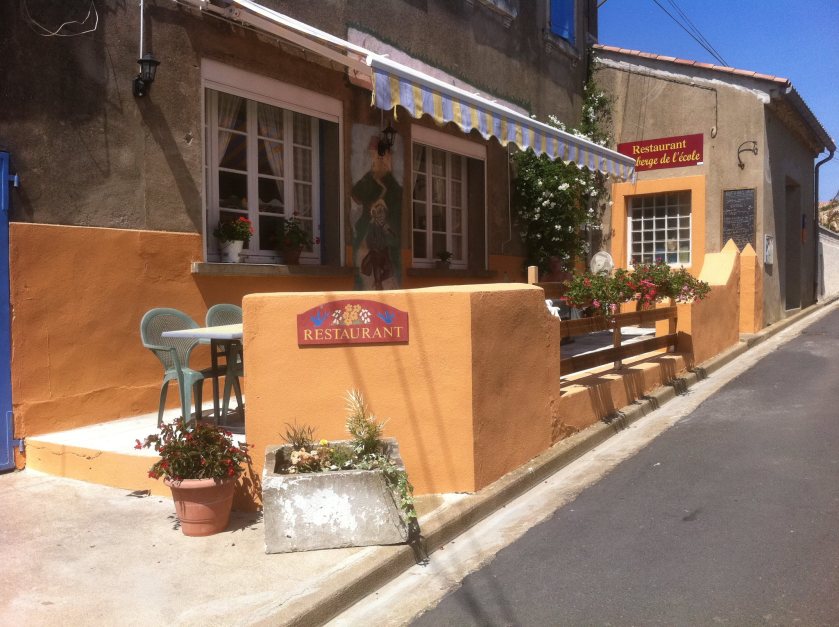 Our favorite local restaurant, in Saint-Jean-de-Minervois, is l’Auberge de l’Ecole, so named because it is in the former schoolhouse (école) of the town. There are two reasons we adore eating here – the restaurant itself is charming with delicious food…and the owners, Brigitte & Patrick Grau, could not be nicer or more attentive to their guests. In fact, we now consider them to be amongst our dearest friends in the area.